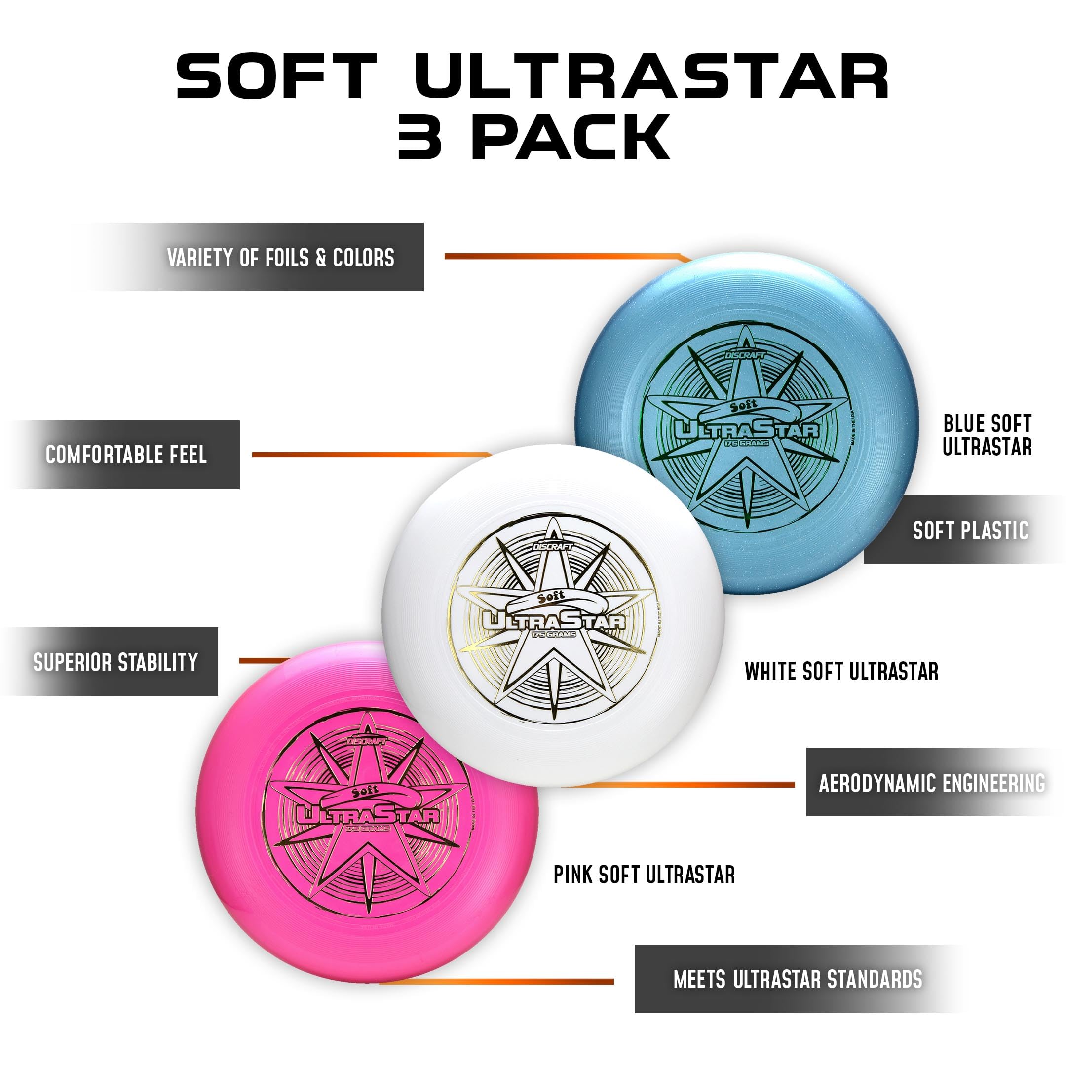 Soft Ultrastar Ultimate Disc Three Pack - 175grams - Flexible and Durable in White, Pink, Blue Sparkle with Assorted Foils—